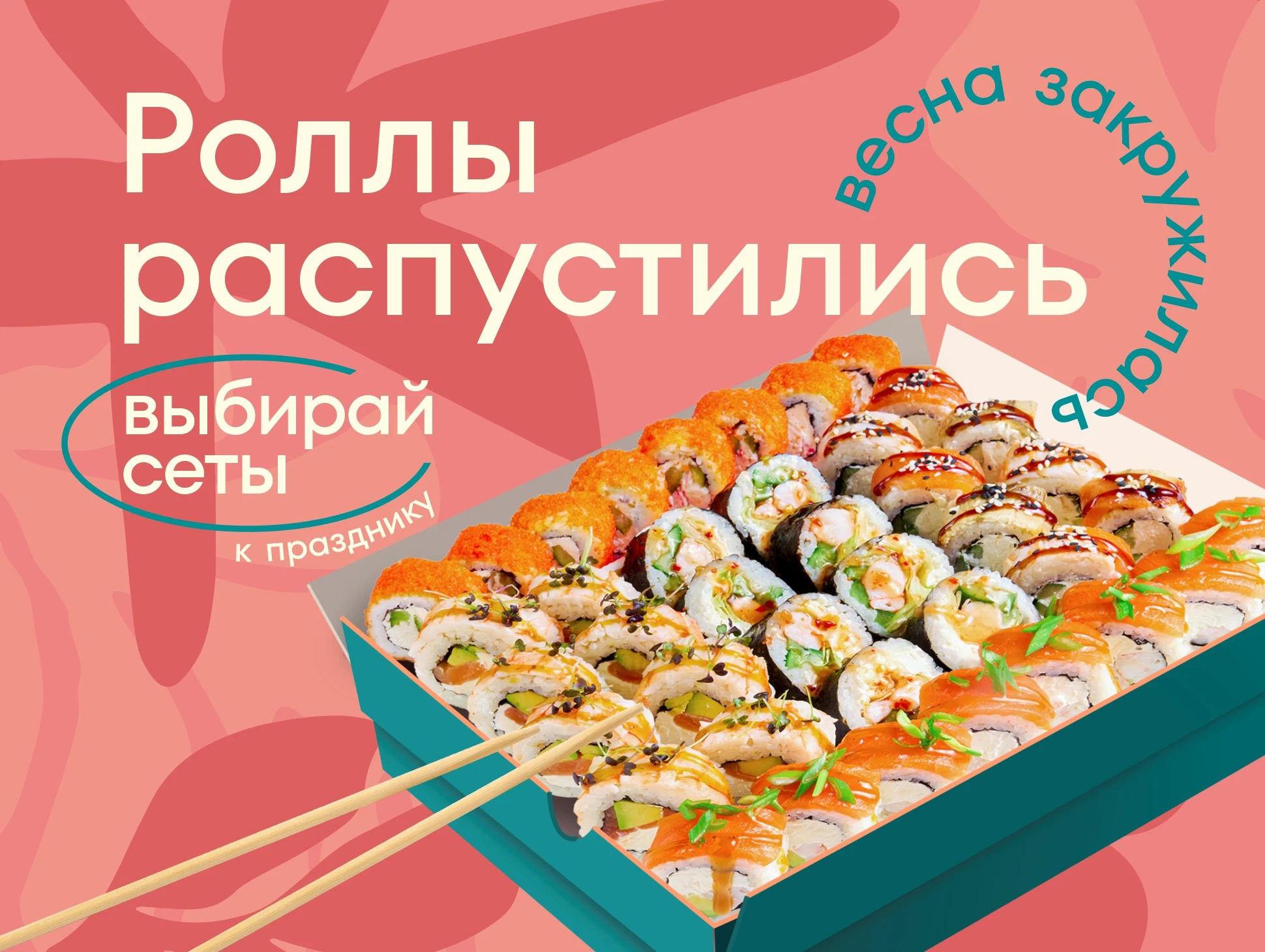 Блюда со скидкойВсе роллы и сушиФиладельфия и классические роллыТемпурные и запеченные роллыРоллы от шефаСетыСуши гунканМаки роллыТом-ям и раменыБлюда на вокеПиццаСалаты и ЗакускиКомбо и обедыАзиатская лавкаНапиткиДесертыСоусы и приборыДетское меню